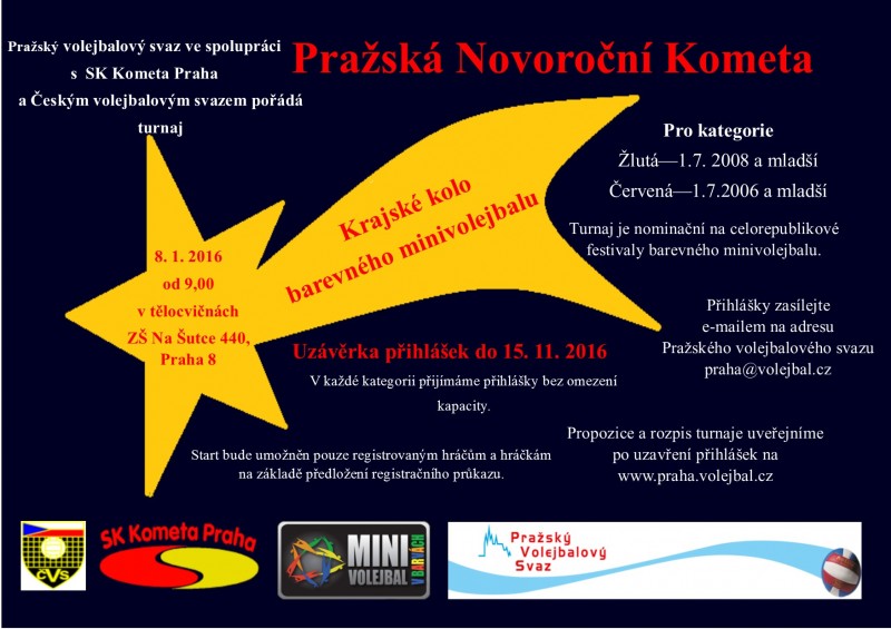 V neděli 8. ledna se na ZŠ Na Šutce uskuteční krajské kolo barevného minivolejbalu pro všechna družstva, která vybojují postup na Novoroční Kometě!