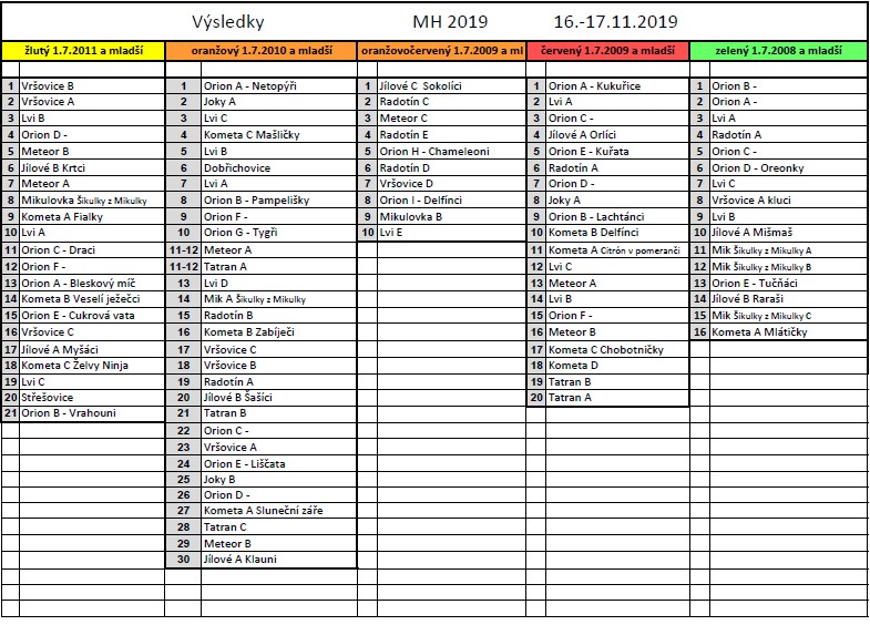 Výsledky našich týmů na Modřanské hvězdičce